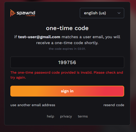 - if the code is correct, you'll be logged in automatically. if the code is invalid or expired, you'll see an error message; just request a new code and try again.