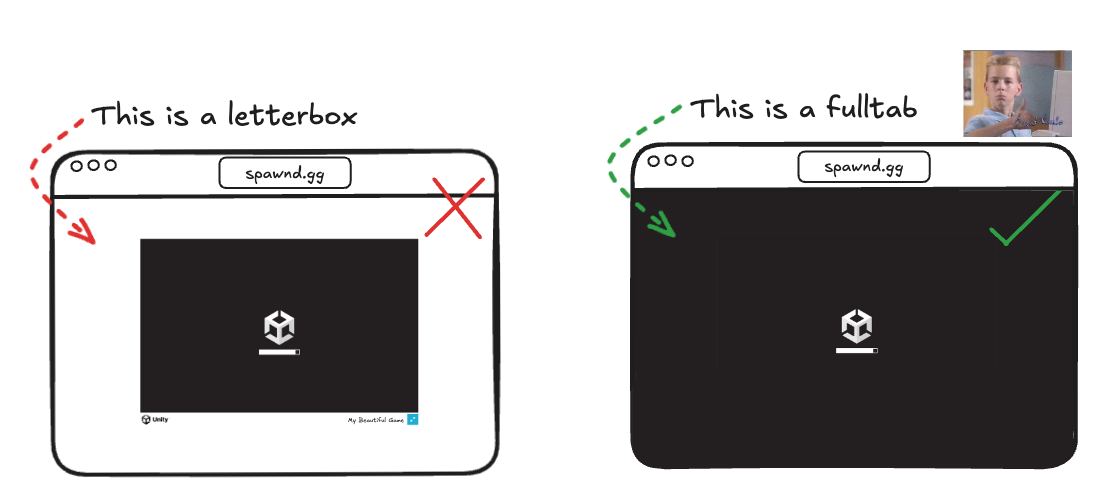 - Launch in fulltab (ie. covering the full canvas space) — no “windowed” or letterboxing should be present;