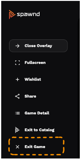 For that reason we recommend you remove any such option from your game's menu, as the spawnd contextual menu already contains an option to close the game.